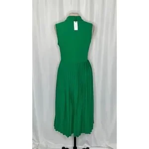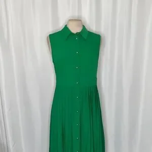 NWT!! KAREN MILLEN Soft Tailored Pleated Sleeveless Shirt Dress Solid Green US 8