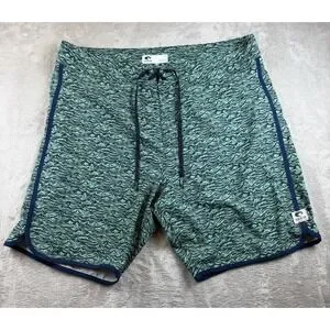 COSTA Board Shorts Mens 38 Green Wave Pattern Performance Swim Surf Trunks