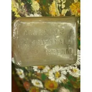 A collection of three vintage glass bottles, including a Grove's Tasteless Chill Tonic bottle prepared by Paris Medicine Co. St. Louis, a Courage's Oriental Cream bottle, and a small cobalt blue Vicks bottle with its original cap. These antique bottles offer a glimpse into historical remedies and personal care products, perfect for collectors or as unique decorative pieces.