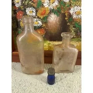 Keywords: antique bottles, vintage apothecary, glass collectible, old medicine bottle, Victorian era, old pharmacy, historical display, collectible decor, old remedies, glassware, curio cabinet, farmhouse decor, nostalgia