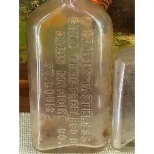 Vintage Apothecary Bottles Lot Groves Chill Tonic Courage's Oriental Cream Vicks