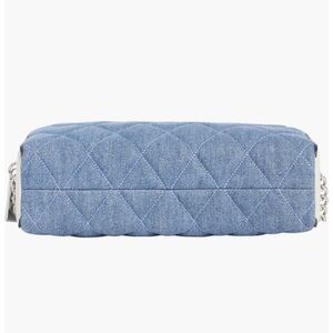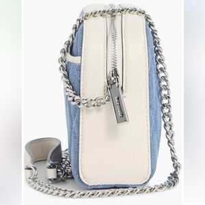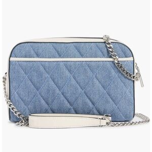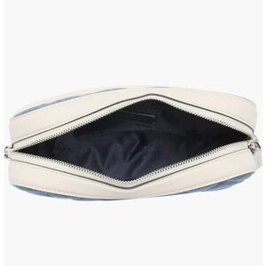 Carry only the essentials during your next outing with this compact camera bag featuring diamond-quilted denim panels in a colorblocked design. Material is textile/leather with a logo-jacquard lining. Approximate measurements: 8" x 5 1/4" x 2 1/4", with a 49 1/2" shoulder strap drop. Let me know if you have any questions! Bundle and save, and please note that I reuse shipping materials whenever possible ♻️