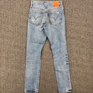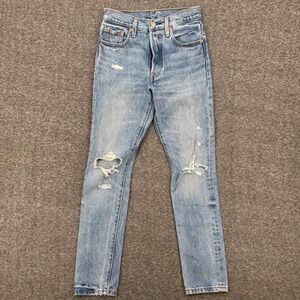 Levis 501 Skinny Jeans Womens 24x30 Light Wash Distressed Button Fly Denim Long