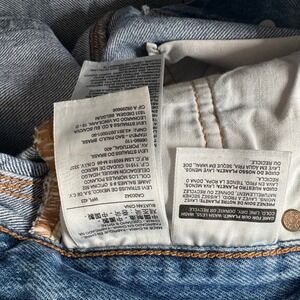 Levi's 501 Skinny jeans offer a timeless aesthetic with a modern, slim-fit silhouette. These high-rise denim pants feature a classic button fly, five-pocket styling, and the iconic leather patch at the back waist. The light wash is accented by heavy distressing, including shredded knees and subtle fraying throughout, giving them a lived-in, vintage-inspired look. Crafted from durable non-stretch denim, they maintain their shape while providing a comfortable, structured feel.