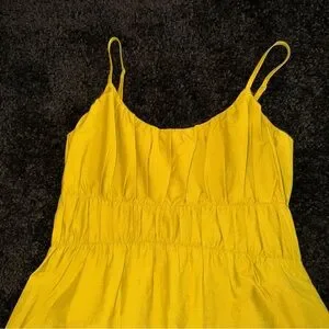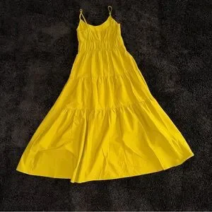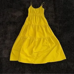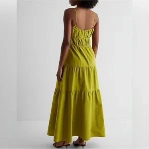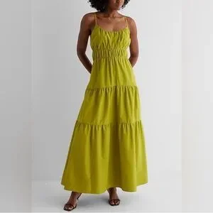 Express tiered maxi dress in a bright lime green. Features adjustable spaghetti straps and a shirred waist. Flowing tiered skirt for easy movement. Lightweight fabric perfect for warm days. Perfect condition!