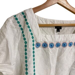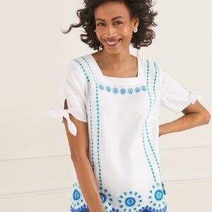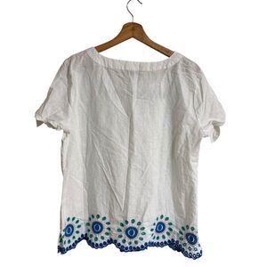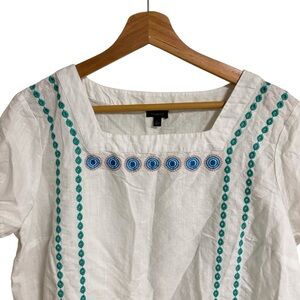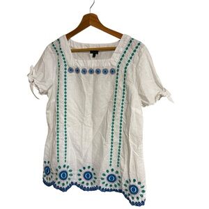 Talbots white linen cotton blend embroidered eyelet tie sleeve square neck spring top size large