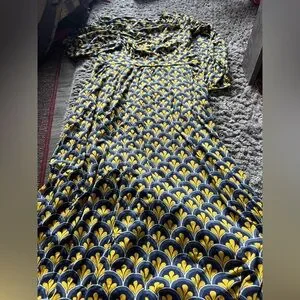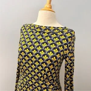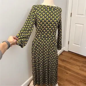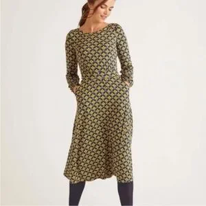 Boden Sasha Printed Jersey Midi Dress Yellow Geometric Mod Print size 4