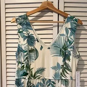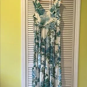Elegant maxi dress with green leaf design. Perfect for casual outings or special occasions. Lightweight and stylish.
