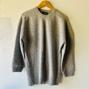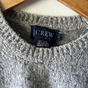 Timeless crewneck design. Soft wool and cashmere blended fabric with speckled color. Made in Italy. Ideal for layering. In excellent condition. No holes, stains frays or discoloration. Smoke free environment.