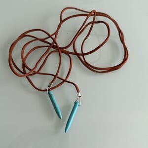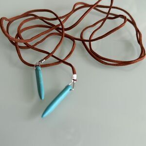 Elegant brown leather necklace featuring striking turquoise accents. Perfect for adding a touch of color to any outfit.