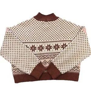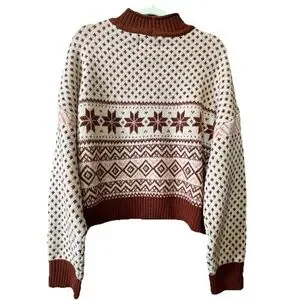 American Eagle Fair Isle Cropped Sweater XL Nordic Mock Neck Knit