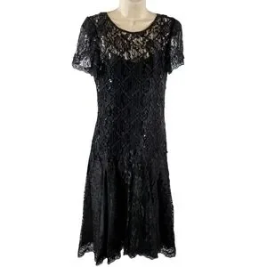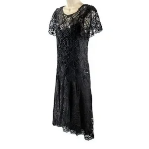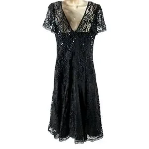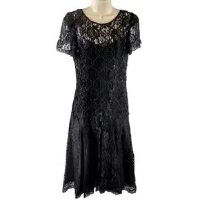 Discover elegance with this stunning black lace midi dress. Perfect for any event, its exquisite lace detailing enhances your style.