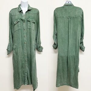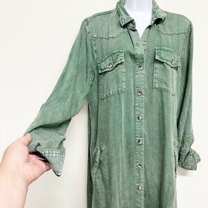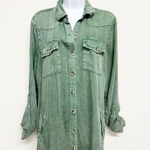Billy T Womens Pine Green Long Sleeve Button Up City 2-Way Shirt Dress Size M