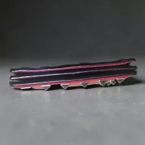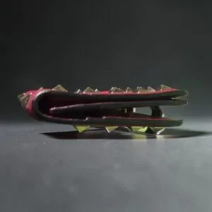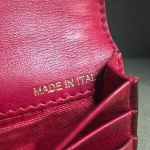 Valentino Garavani Rockstud mini wallet comes in a gorgeous red calfskin leather. Four card slots and one pocket for folded bills. Minor signs of wear. Studs, leather and edges are intact.