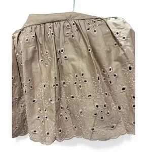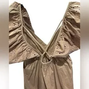 Sweet and charming blush coloured dress with eyelet puff sleeves and bottom trim. Perfect for casual outings. Criss cross back and hidden side zipper for easy in and out. Comfortable and stylish. Worn once.
