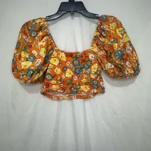 Floral Zara Crop Top Size L In great condition Ruched Balloon sleeves