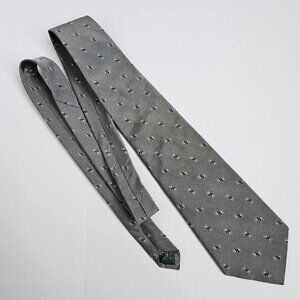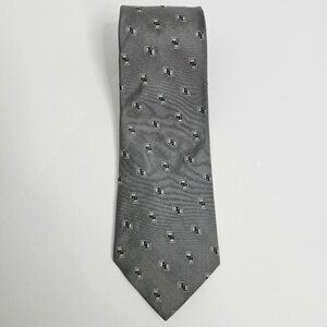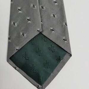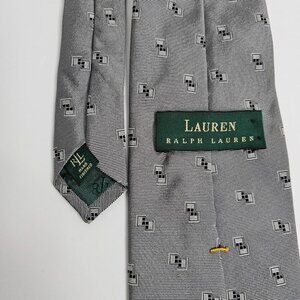 LAUREN RALPH LAUREN 100% Silk Tie Necktie GRAY with SILVER BLACK Geometric 57"