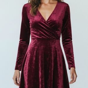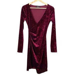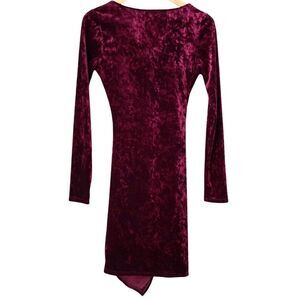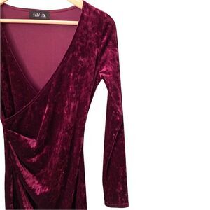 Fab'rik Burgundy Red Velvet V-Neck Long Sleeve Mini Dress in Size Small