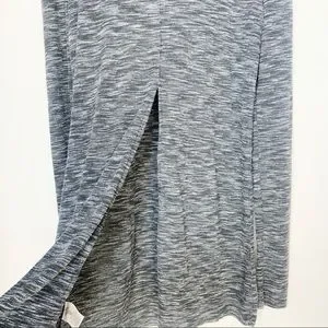 A long sleeve tunic that features a turtleneck and a split back detail.