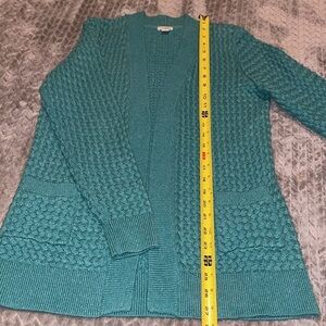 L.L. Bean Open Front Teal Waterfall Sweater. 2 front pockets. Size M. Cotton