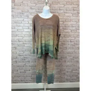 Hardtail matching set showcases a relaxed, tie-dye gradient across a long-sleeve top and coordinating pants. The earthy palette shifts from warm brown tones to teal, creating a cohesive, wearable art look.