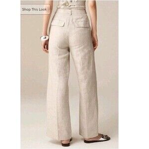 J. Crew Tall Wide-Leg Essential Pant In 100% Linen Beige BX983 Size 6T NWT