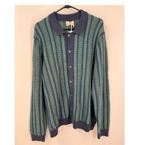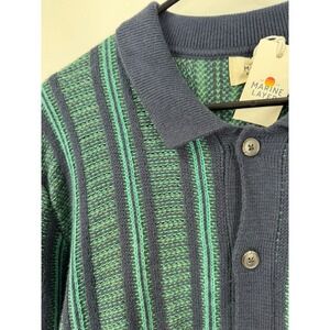 Marine Layer Arthur Sweater Button Down Cardigan Wool Blend Navy Green Stripe Lg