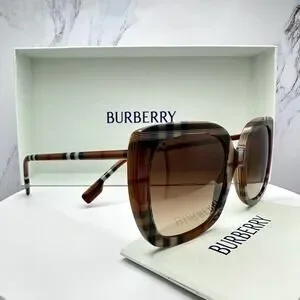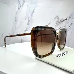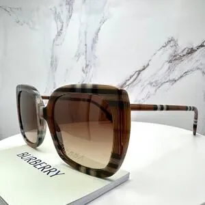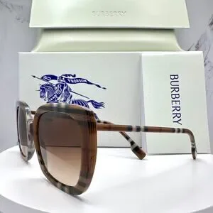 New Burberry Sunglasses Brown Check Square Frames Gradient Lens w/ Case BURBERRY