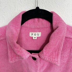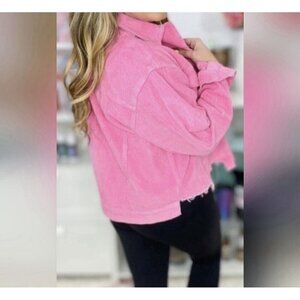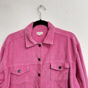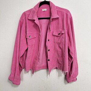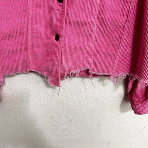 Pol Barbie Pink Wide Wale Corduroy Jacket Distressed Frayed Hem Size M Button Up