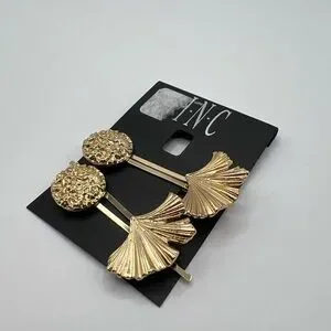 Inc International Concepts 4-Pc. Disc & Leaf Bobbypins in Gold-Tone NWT MSRP $30