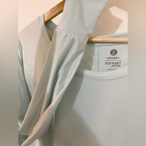 old navy active, active top, long sleeve workout top, mint blue top, light blue shirt, athleisure top, women’s XS, relaxed fit top, yoga top, gym shirt, lightweight activewear, soft performance fabric, running top, casual long sleeve, everyday basics, comfy loungewear