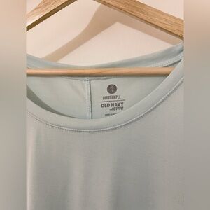 The perfect “throw on and go” active top. Lightweight, silky-soft, and designed with that relaxed, easy fit Old Navy Active is known for. The color is a dreamy soft mint/ice blue — super flattering and looks great with leggings, joggers, or denim.