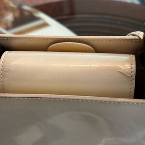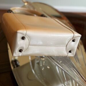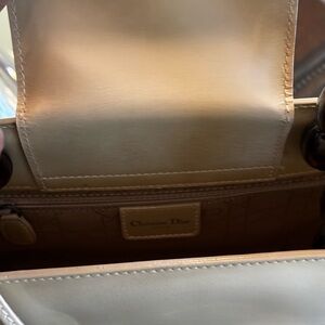 Polished Christian Dior Tan Patent Shoulder Bag with Glossy Bead Handles