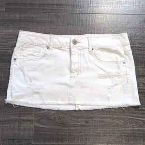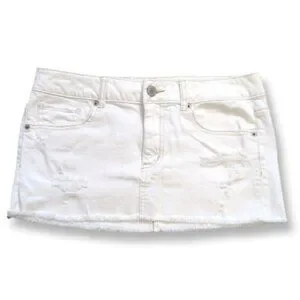 💠 American Eagle White Distressed Denim Mini Skirt Womens Size 6 Stretch