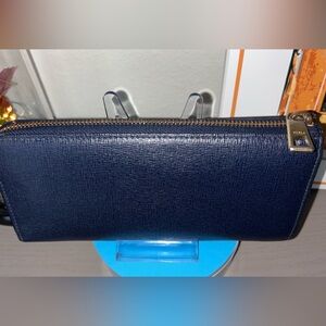 Furla Navy Saffiano Zip Wallet with Gold Logo