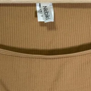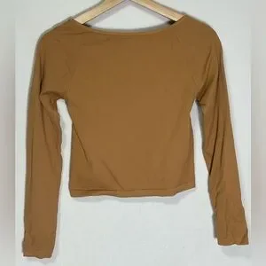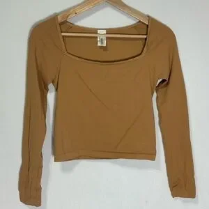 Nikibiki Womens Ribbed Square Neck Long Sleeve Top Camel Tan Seamless NS4061