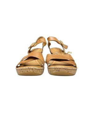 Born Women's Alaina Criss-Cross Leather/Cork Platform Wedge Sandals Sz 10M NWOB