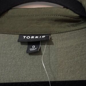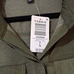 Chic dark green blouse with button-up design. Features long sleeves and chest pockets. Ideal for versatile styling.