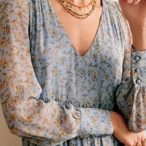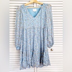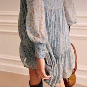 Chic mini dress with floral pattern. Features long sleeves and a flowy silhouette. Perfect for casual outings.