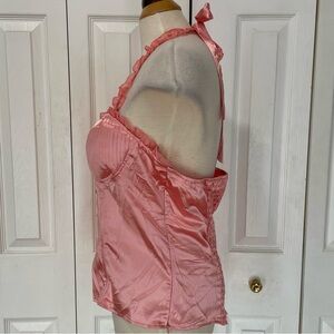 Vintage Satin Dots Pink Corset Top with Jacket Caplet Set