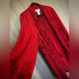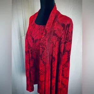 Coldwater Creek Set Cardigan Jacket & Tank Red Slinky Knit Travel Elegant EUC 1X