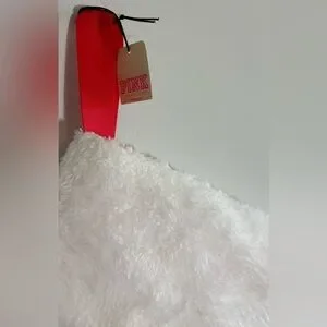 Victoria’s Secret PINK Christmas Stocking Red Logo Pink White Plush Cuff NWT