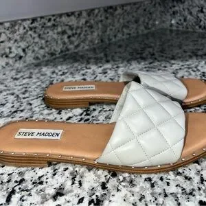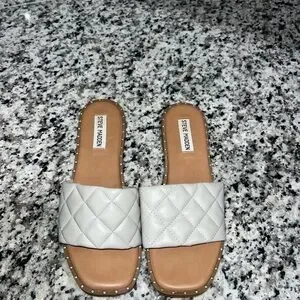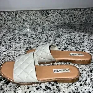 Steve Madden Quilted Cream Slide Sandals with Stud Trim
