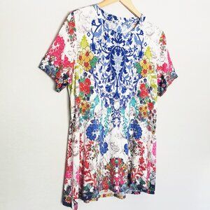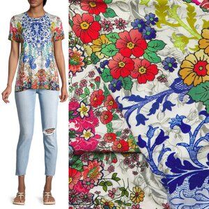 Johnny Was Shellinay Favorite Short Sleeves Crew Swing Tee Top L Bamboo $120
