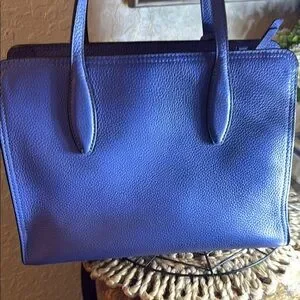 Kate Spade Blue Leather Tote Bag RETALS $489 NWOT 12”1/2 L X 9”D DUSTY 2️⃣