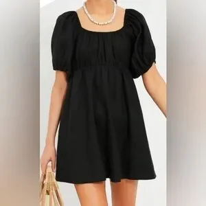 NEW Pomander Place Ares Puff Sleeve Mini Dress Women’s XL Black Party Cocktail