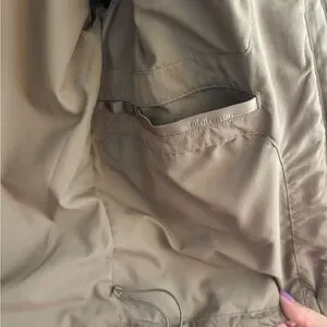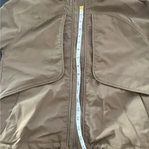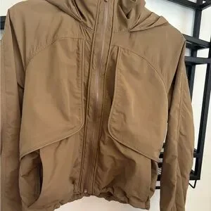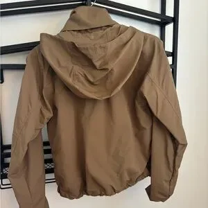 rain jacket, size 2, hood that can be tucked into collar, three zip pockets, no known flaws