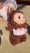Adorable brown plush toy with a pink pouch. Features a cute face and fluffy texture.