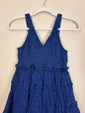 Zara Girls' Cobalt Blue Smocked V-Neck Tiered Sundress Girl’s 11-12 Years