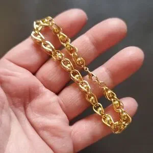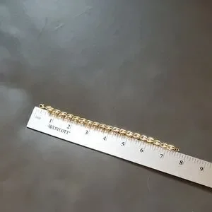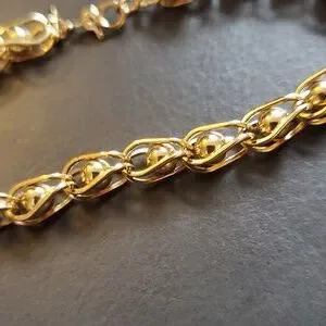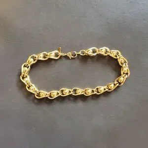 Vintage Monet signed Gold Tone bracelet. Gold linked chain with caged ball / bead inside. No signs of wear or tarnish. Excellent condition and comes in a jewelry gift box.